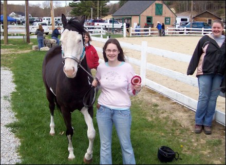 Here’s Kim after winning 2nd Place in the Western Halter class, showing Romeo’s Storm Cloud (aka